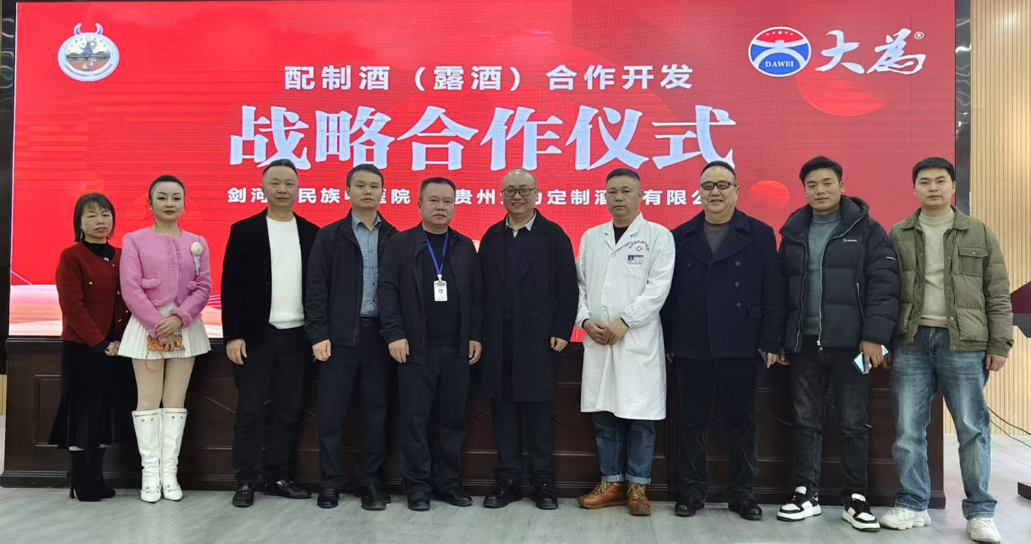 近日,大为定制酒与剑河县民族中医院正式签署战略合作协议,双方将围绕“养生配制酒”的研发与应用开展深度院企合作。此次合作旨在融合传统酿酒工艺与现代中医药养生理念,打造具有地方特色与文化内涵的健康产品,共同推动大健康产业与民族医药的创新融合发展。